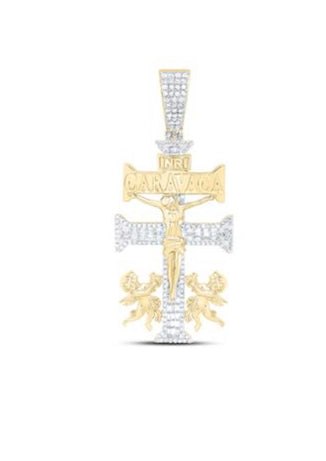 1 1/4CTW-DIA NK LA CRUZ DE CARAVACA PLATA CROSS MENS CHARM