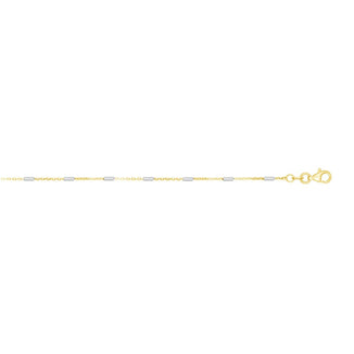 14K Gold 1.4mm Two-tone Polished Bar Station Saturn Chain