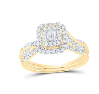 1/2CTW-DIA CN EMERALD DOUBLE HALO BRIDAL SET