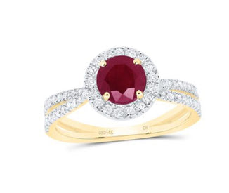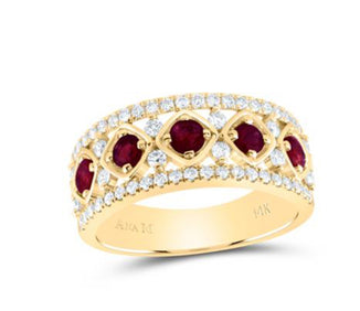 1/2CTW-DIA ANA M 3/4CT RD-RU NAT GEM RING