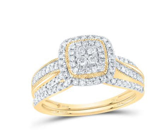 1/2CTW-DIA CN CUSHION DOUBLE HALO BRIDAL SET