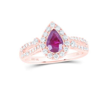 10K ROSE GOLD PEAR RUBY DIAMOND FASHION RING 1-1/2 CTTW