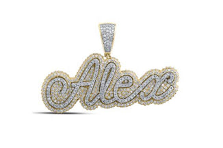 10K TWO-TONE GOLD ROUND DIAMOND ALEX NAME CHARM PENDANT 2 CTTW