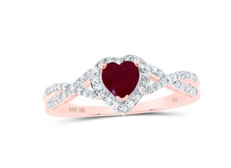10K ROSE GOLD HEART RUBY DIAMOND HALO RING 1 CTTW