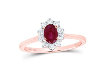 10K ROSE GOLD OVAL RUBY DIAMOND HALO RING 3/4 CTTW