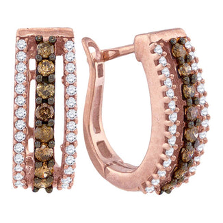 10k Rose Gold Cognac-brown Color Enhanced White Diamond Womens Pave Hoop Earrings 1/2 Cttw