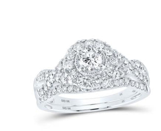 10K WHITE GOLD ROUND DIAMOND HALO BRIDAL WEDDING RING SET 1 CTTW (CERTIFIED)