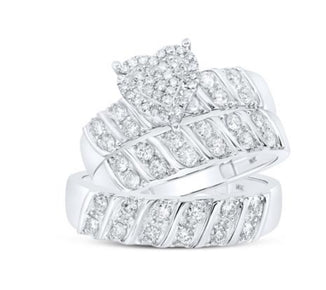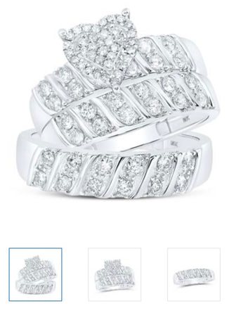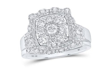 10K WHITE GOLD ROUND DIAMOND CLUSTER BRIDAL NICOLES DREAM COLLECTION WEDDING RING SET 1 CTT