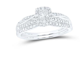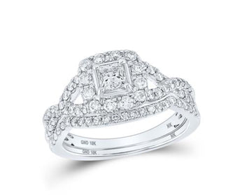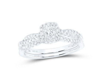10K WHITE GOLD PRINCESS DIAMOND HALO BRIDAL WEDDING RING SET 1/2 CTTW (CERTIFIED)