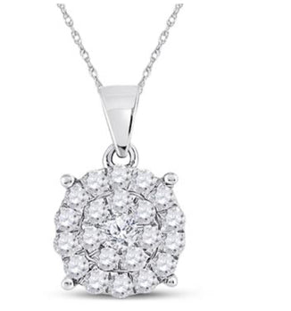 10K WHITE GOLD ROUND DIAMOND CLUSTER PENDANT 1 CTTW