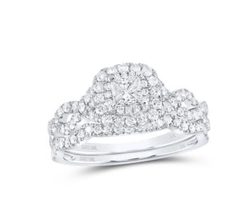 10K WHITE GOLD PRINCESS DIAMOND HALO BRIDAL WEDDING RING SET 1 CTTW (CERTIFIED)