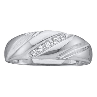 10k White Gold Round Channel-set Diamond Mens Wedding Anniversary Band 1/10 Cttw