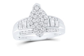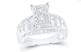 10K WHITE GOLD ROUND DIAMOND RECTANGLE CLUSTER BRIDAL ENGAGEMENT RING 7/8 CTTW