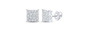 10K WHITE GOLD ROUND DIAMOND SQUARE EARRINGS 1 CTTW