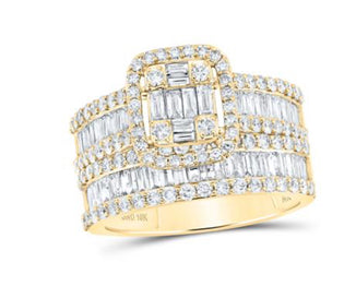 10K YELLOW GOLD BAGUETTE DIAMOND BRIDAL WEDDING RING SET 2 CTTW