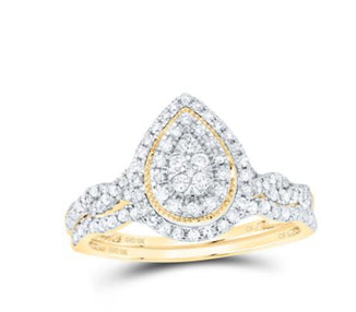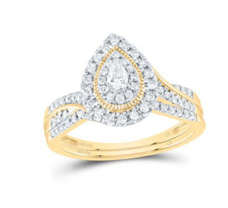 1/2CTW-DIA CN PEAR DOUBLE HALO BRIDAL SET