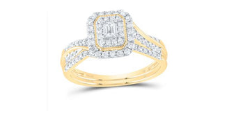 1/2CTW-DIA CN EMERALD DOUBLE HALO BRIDAL SET