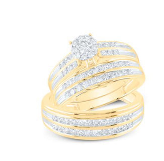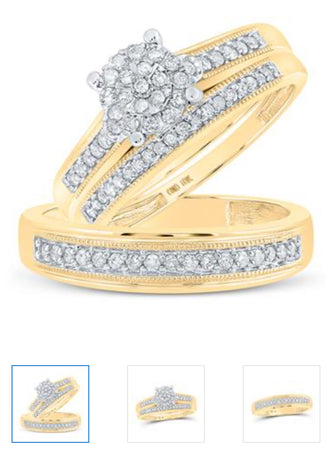 10K YELLOW GOLD ROUND DIAMOND CLUSTER MATCHING WEDDING RING SET 3/8 CTTW