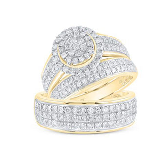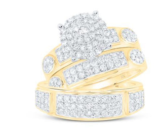10K YELLOW GOLD ROUND DIAMOND CLUSTER NICOLES DREAM COLLECTION MATCHING WEDDING RING SET 1-3/8 CTTW