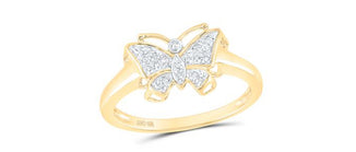 10K YELLOW GOLD ROUND DIAMOND BUTTERFLY RING 1/20 CTTW