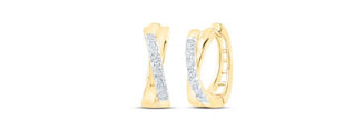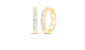 10K YELLOW GOLD ROUND DIAMOND HOOP EARRINGS 1/12 CTTW