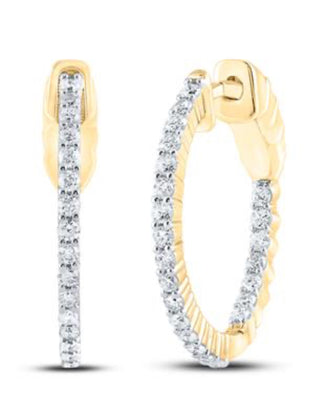 10K YELLOW GOLD ROUND DIAMOND INSIDE OUTSIDE HOOP EARRINGS 1/2 CTTW