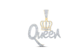 10K YELLOW GOLD ROUND DIAMOND QUEEN CROWN FASHION PENDANT 1/6 CTTW