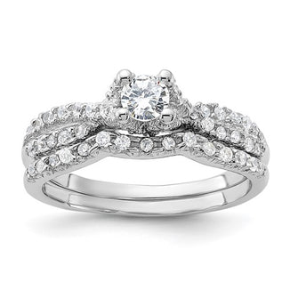 Silver Rhodium-plated 2-Piece CZ Wedding Set Ring