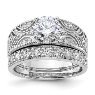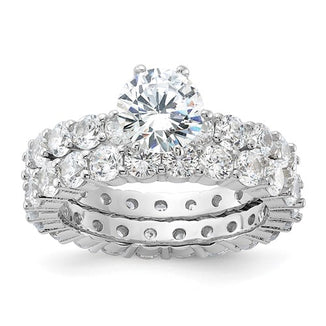Silver Rhodium-plated CZ 2 Piece Wedding Set Ring