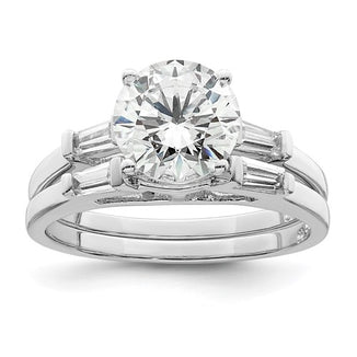 Silver Rhodium-plated Round CZ Center Wedding Ring Set