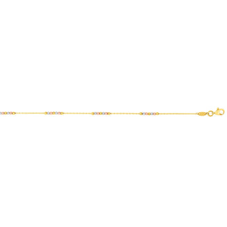 14K Tri-Colorr Gold Diamond Cut Bead Station Anklet