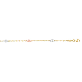 14K Tri-Colorr Gold Diamond Cut Anklet