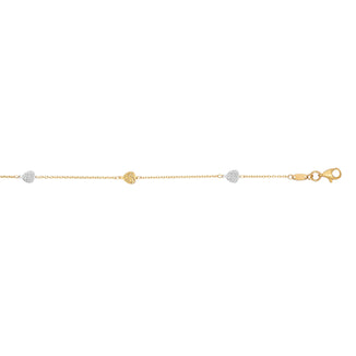 14K Two-tone Gold Diamond Cut Heart Anklet