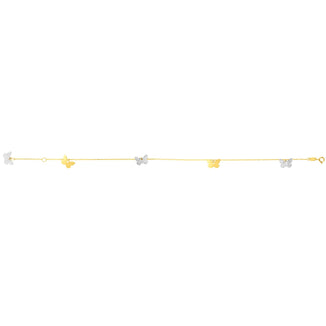 14K Tri-Colorr Gold Puffed Mariner Link Anklet