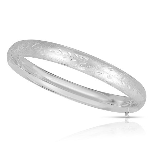 14K White Gold 7" 8mm Floral Leaf Design Bangle