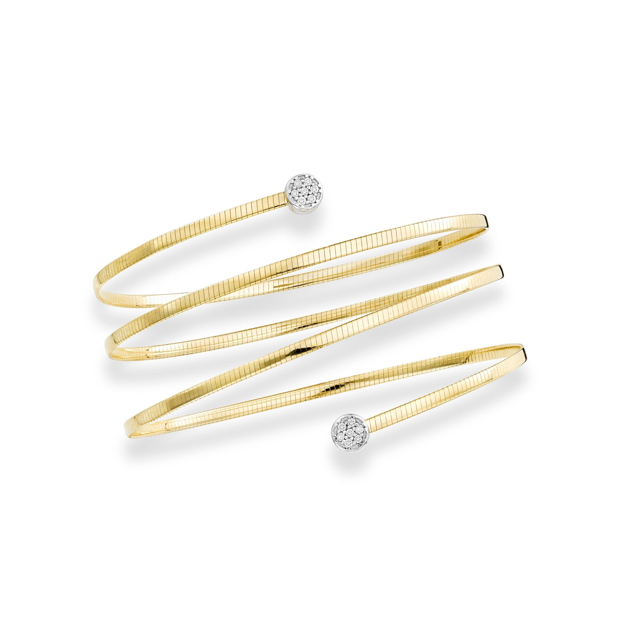 14K Yellow & White Gold Diamond .14ct Omega Coil Wrap Bangle