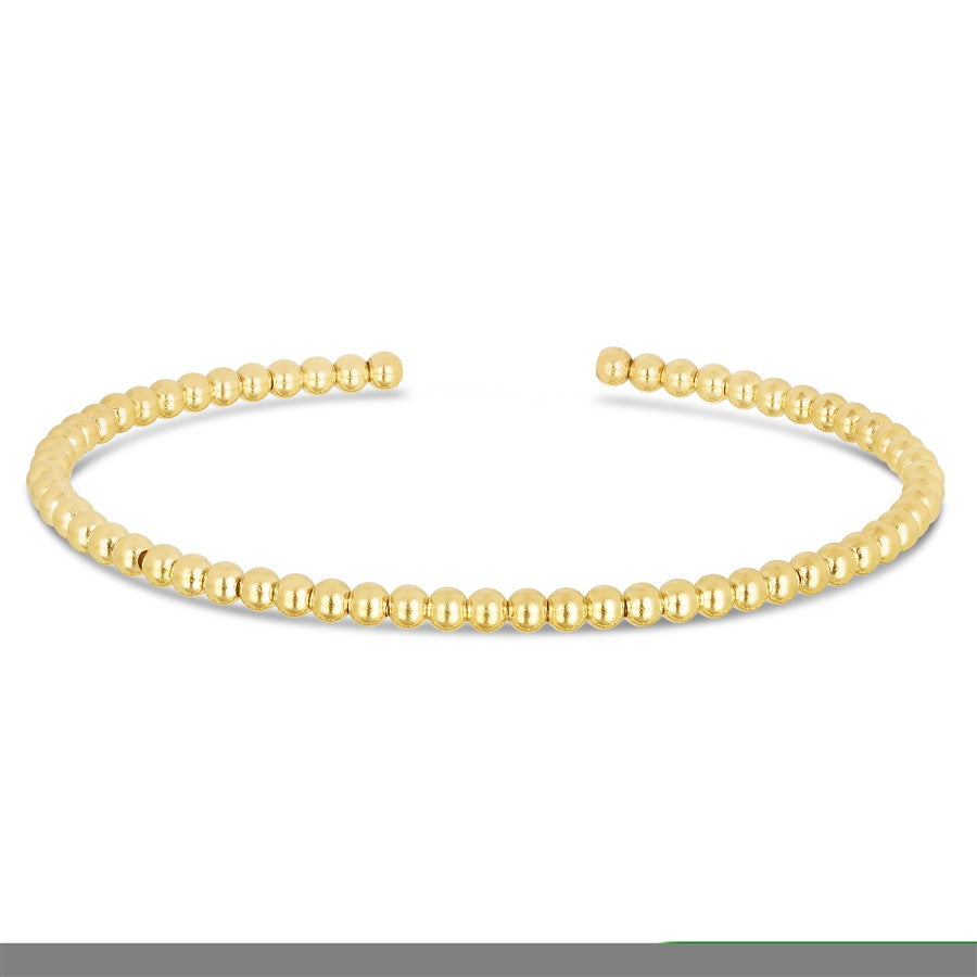14K Yellow Gold 3mm 6.75" Bead Cuff Bangle