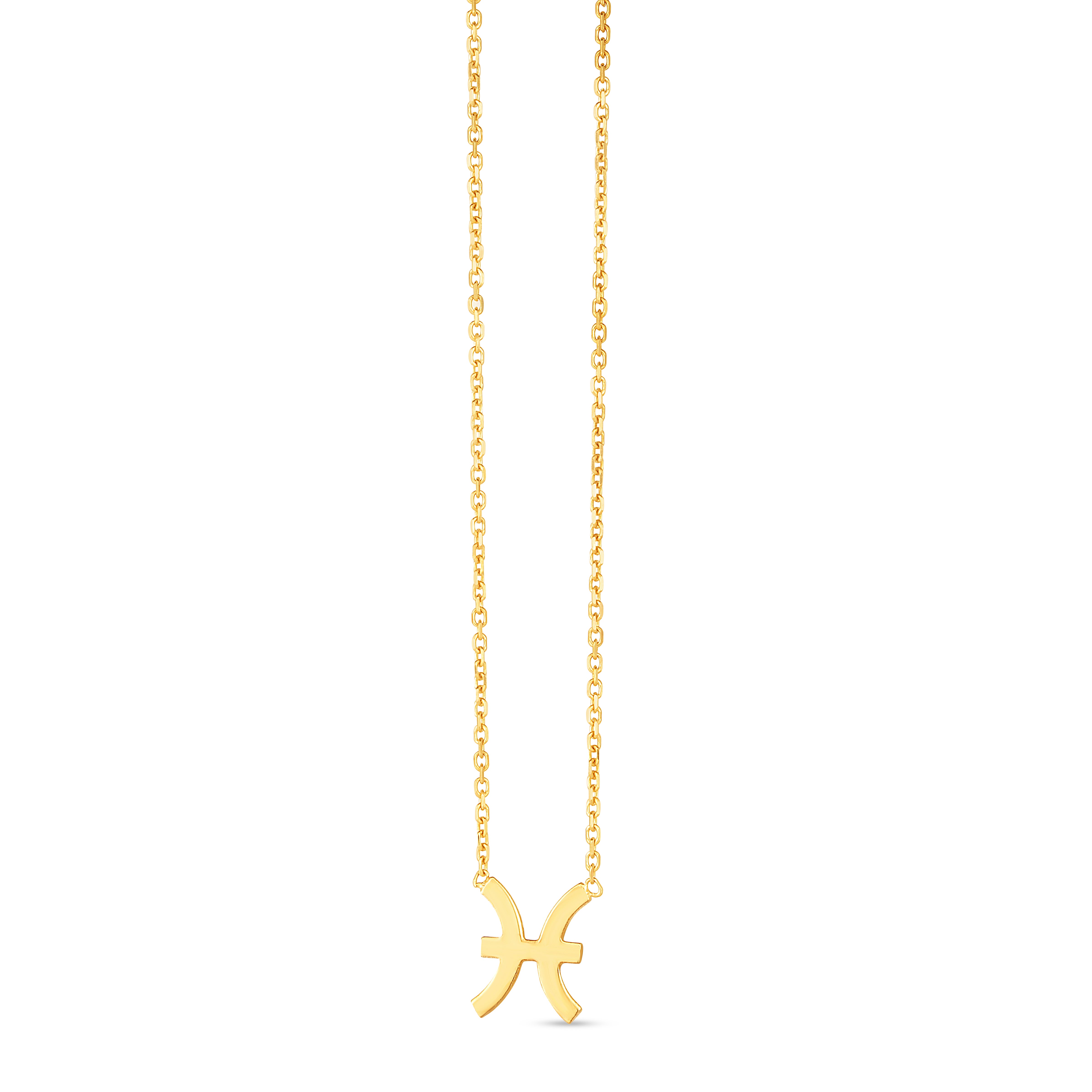 14K Yellow Gold Pisces 18" Necklace with Spring Ring Clasp. Jump Ring at 16"