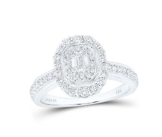 10K WHITE GOLD ROUND DIAMOND RECTANGLE CLUSTER BRIDAL ENGAGEMENT RING 7/8 CTTW