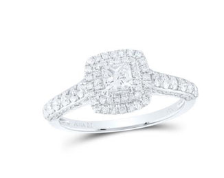 10K WHITE GOLD ROUND DIAMOND CLUSTER BRIDAL ENGAGEMENT RING 1 CTTW