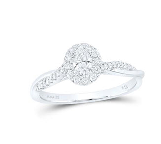 14K WHITE GOLD OVAL DIAMOND HALO BRIDAL ENGAGEMENT RING 1/2 CTTW (CERTIFIED)