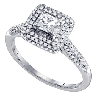14kt White Gold Womens Princess Diamond Solitaire Halo Bridal Wedding Engagement Ring 3/8 Cttw