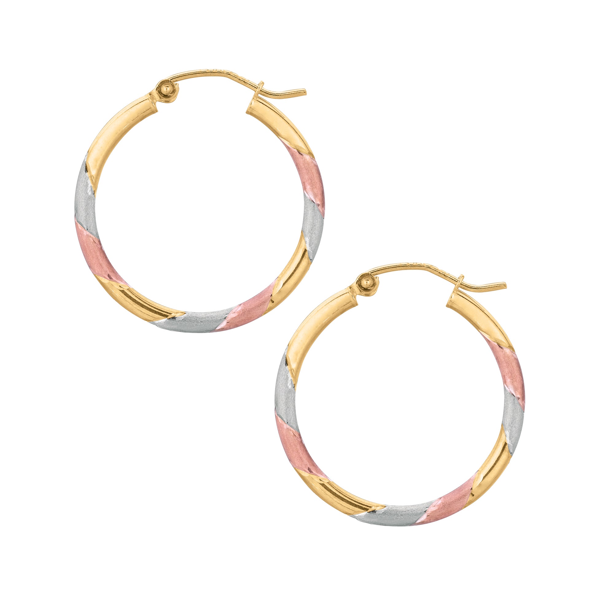 10K Tri-Colorr Gold Polished & Matte Finish Hoop Earring