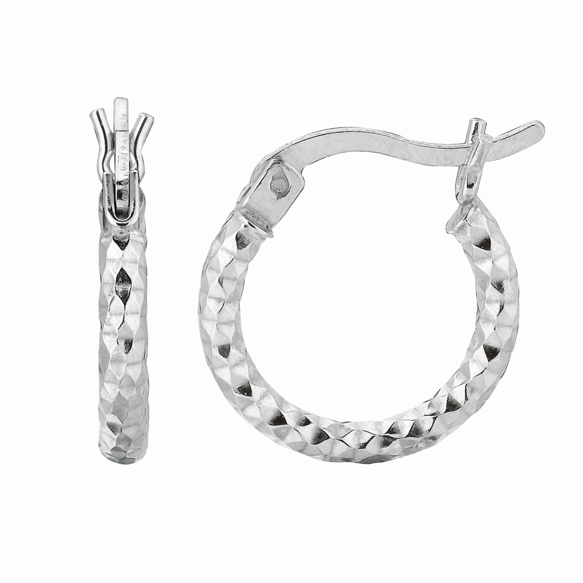 Sterling Silver Diamond Cut Squares Large Hoop Earring