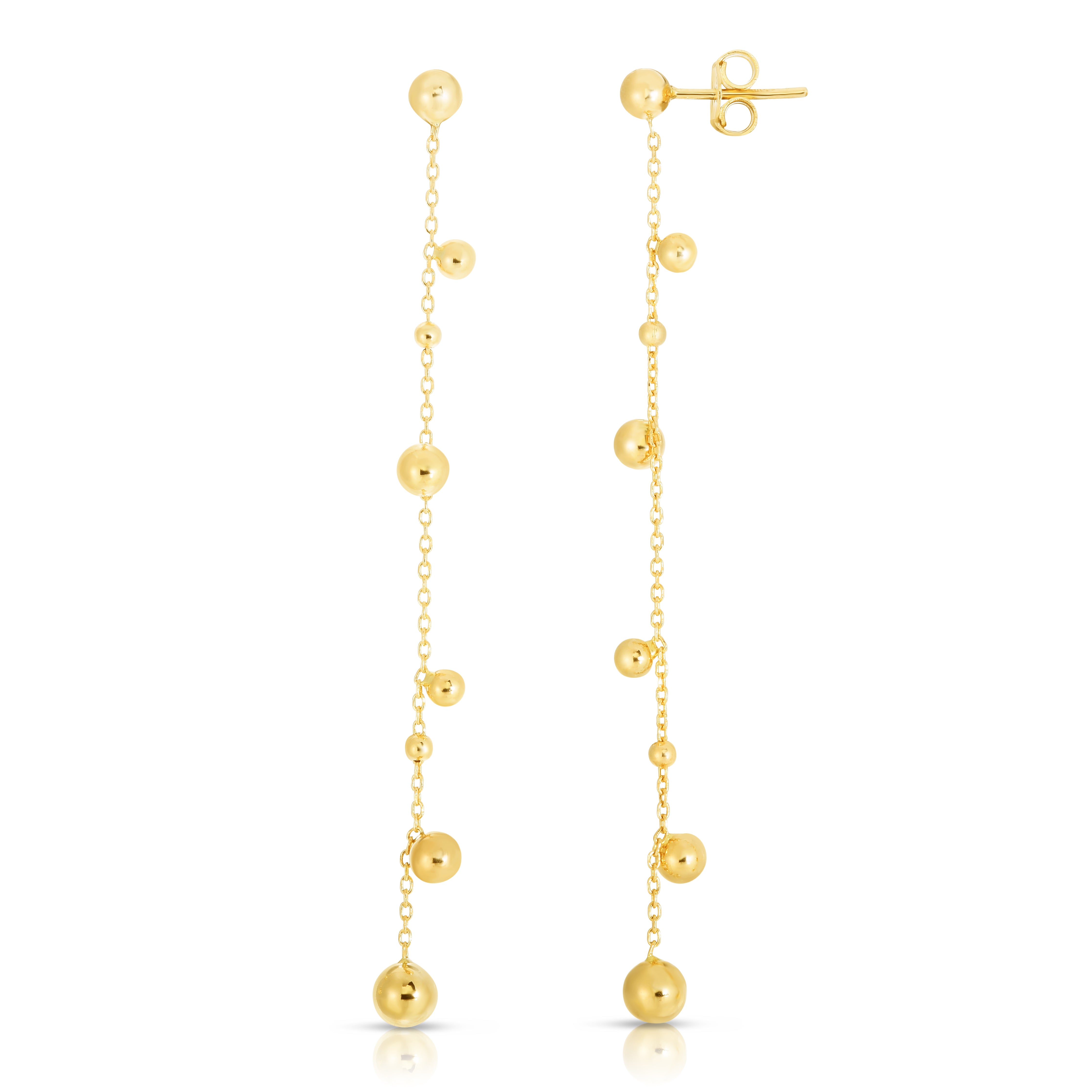 14K Yellow Gold Polished Beaded Drop Earrings with Push Back Clasp