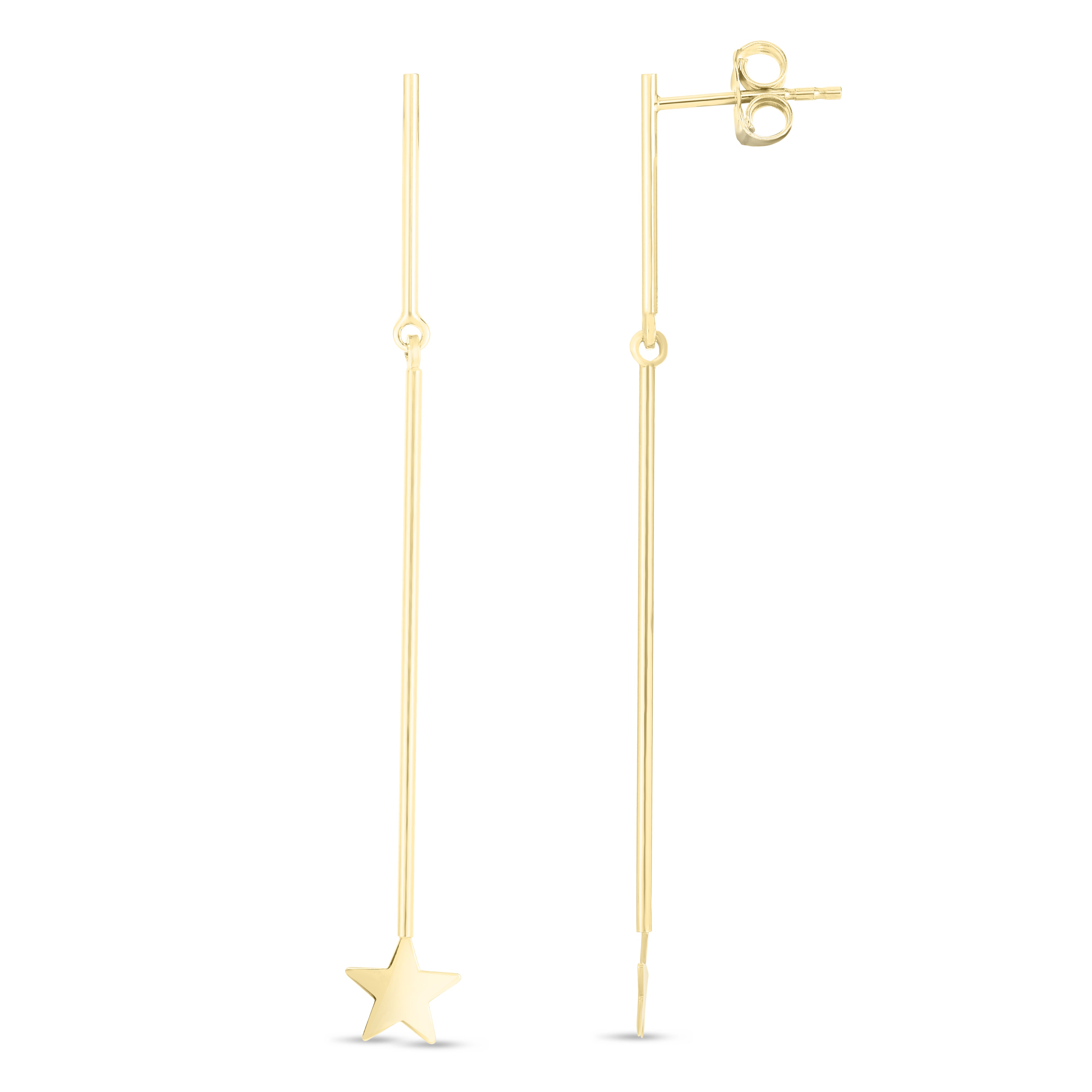 14K Yellow Gold Polished Star Drop Earrings with Push Back Clasp
