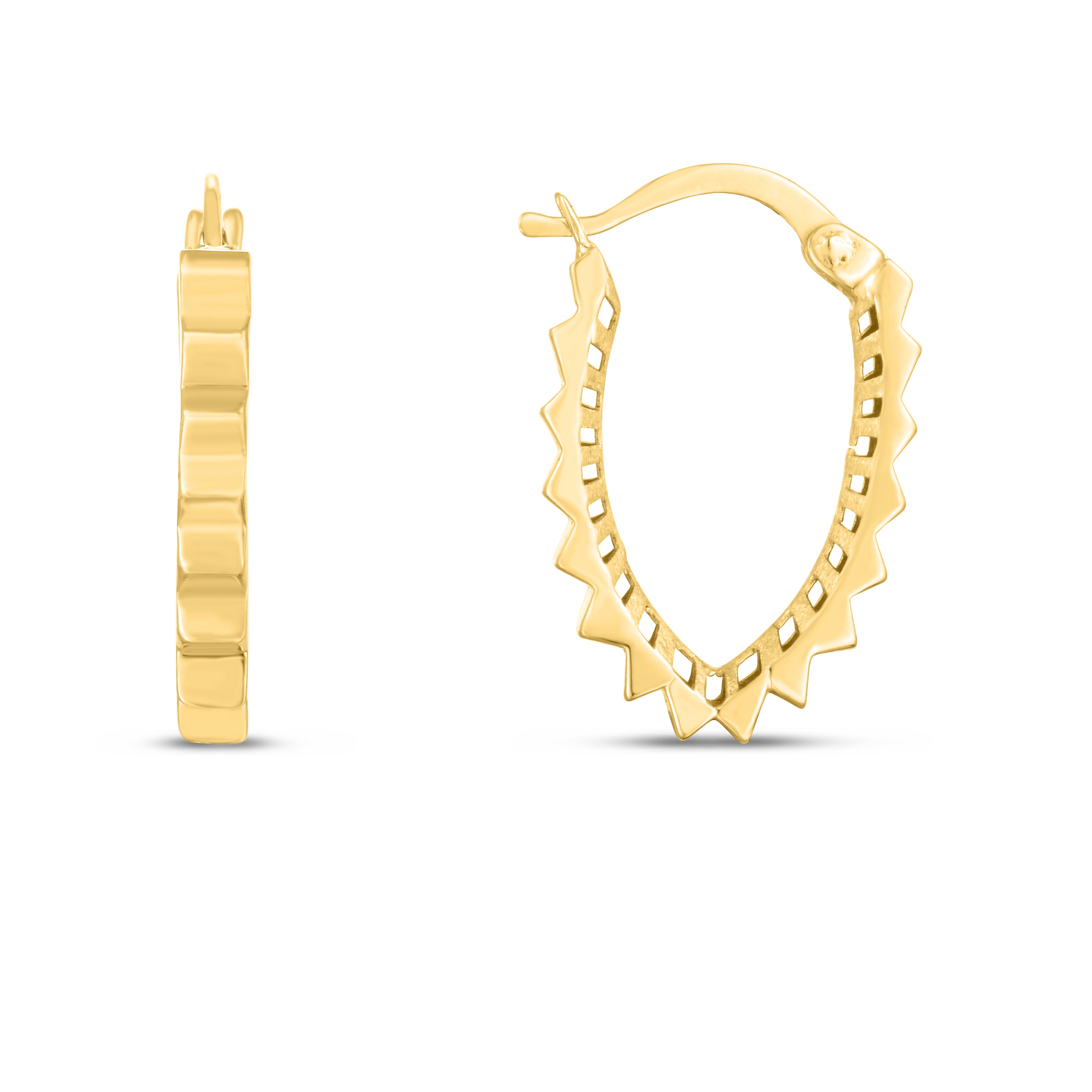 14K Yellow Gold Polished Spiky V-Hoops with Hinged Clasp.