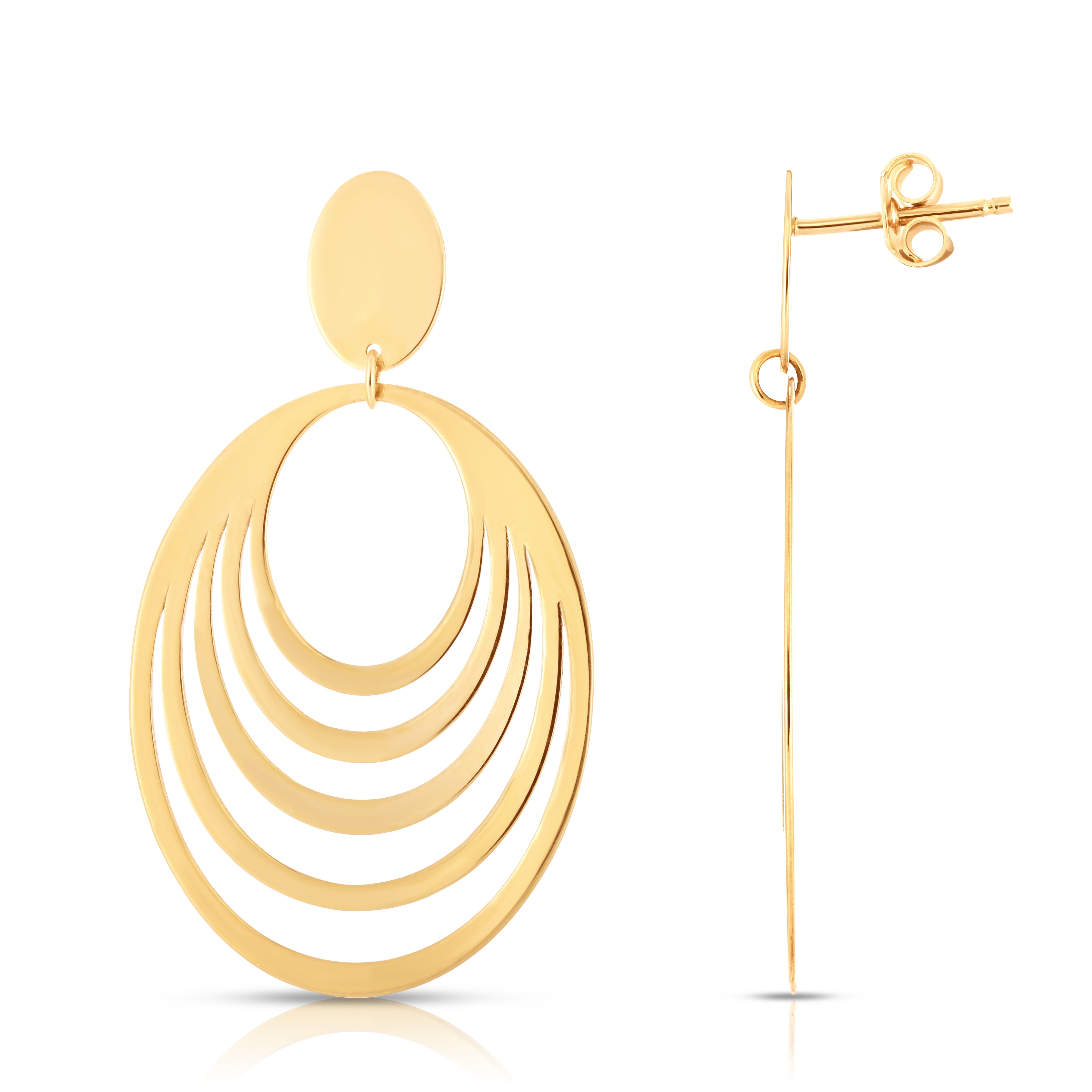 14K Yellow Gold Polished Multi Row Oval Drop Earrigs with Push Back Clasp