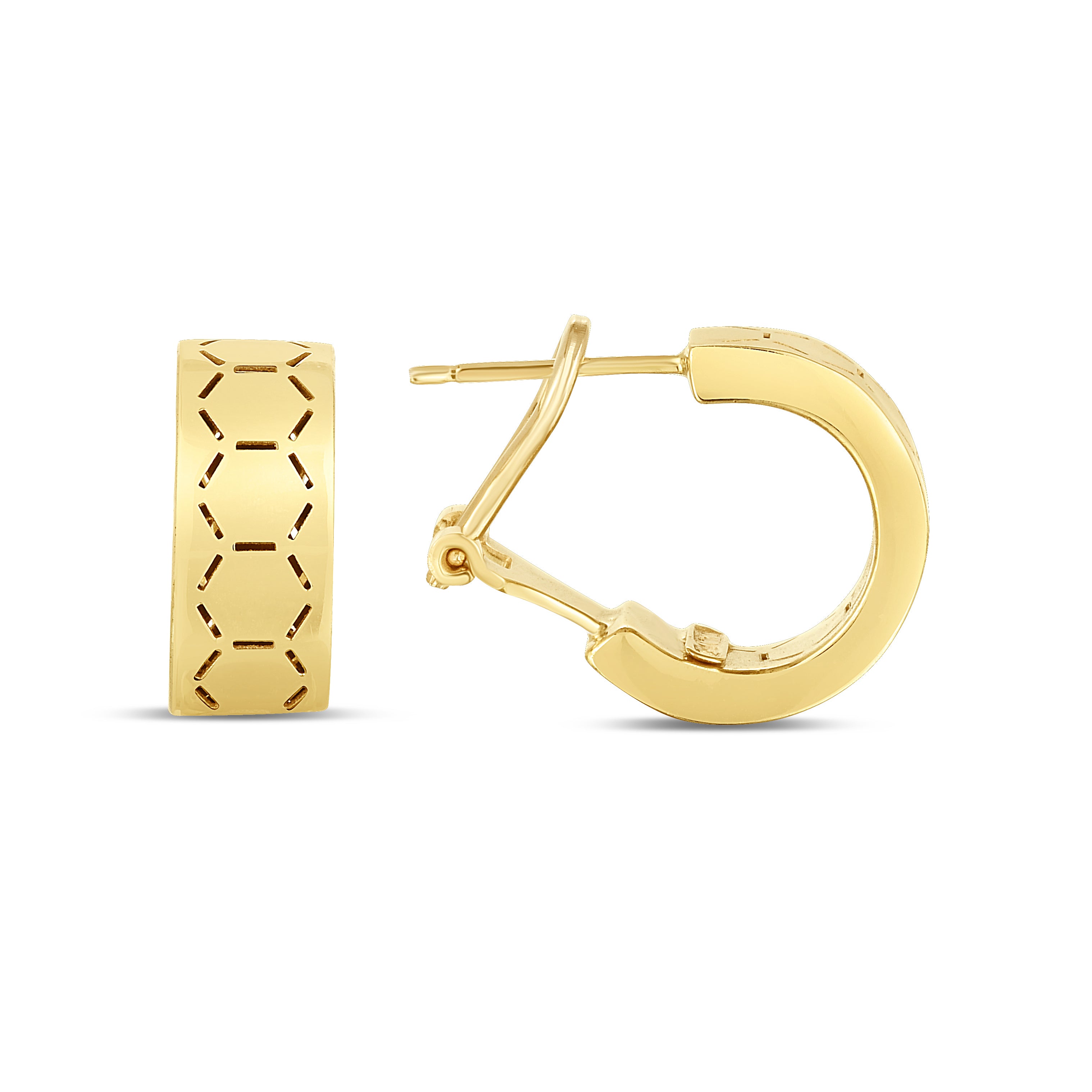 14K Yellow Gold Polished Honeycomb Patterned Hoops with Omega Back