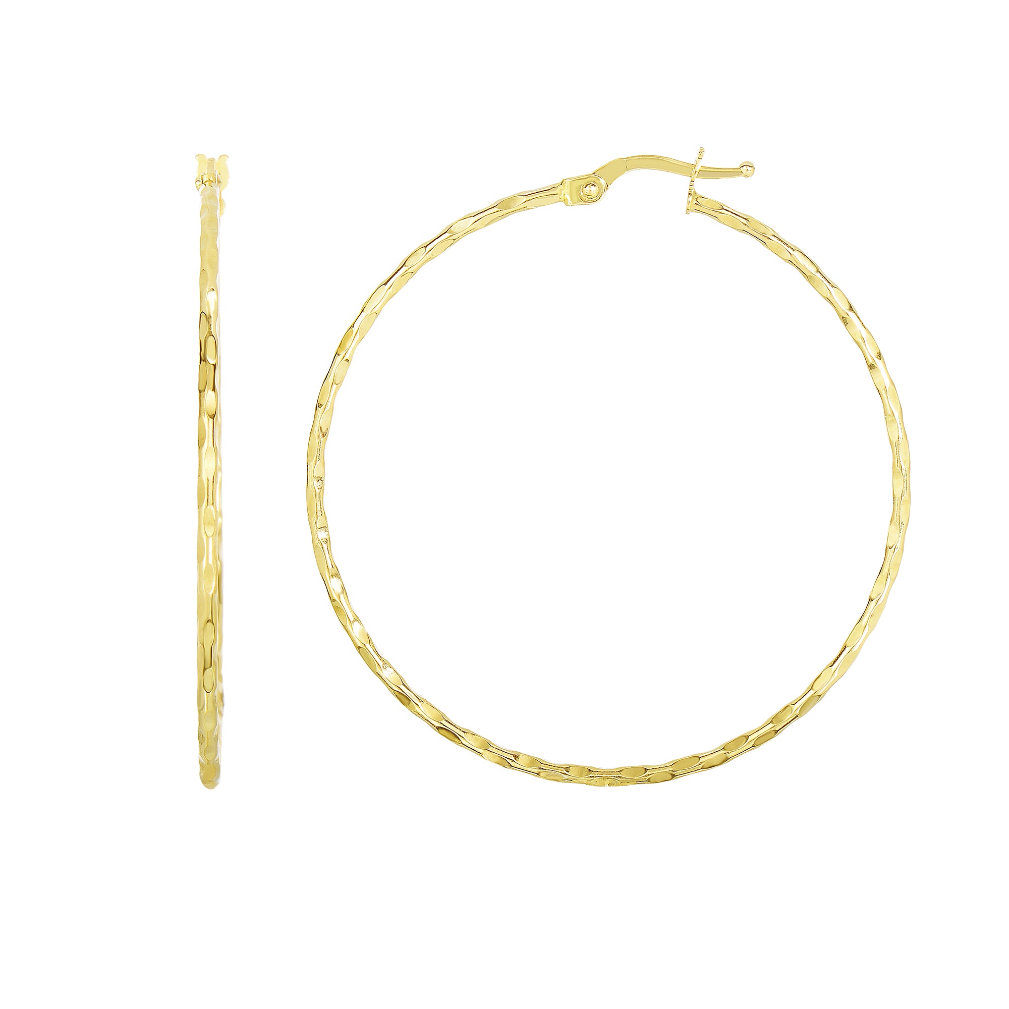 14K Yellow Gold 1.5x45mm Round Diamond Cut Hoop Earring